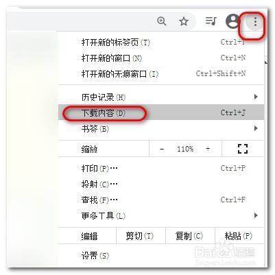 我们点击浏览器右上角的图标,弹出菜单点击下载内容。