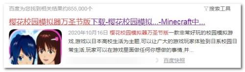 打开浏览器百度搜索关键词樱花校园模拟器万圣节版本,如下图: