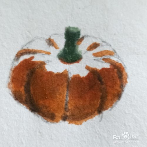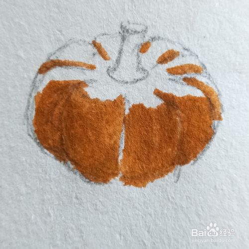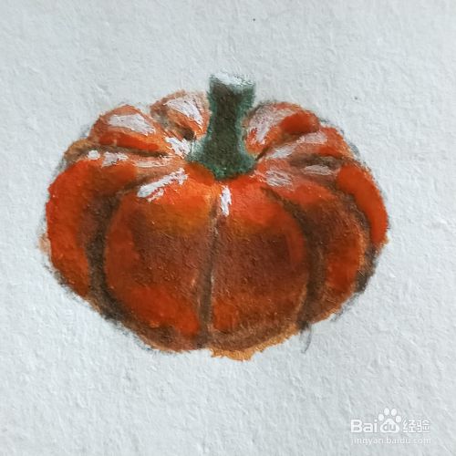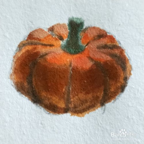 第三步加深小南瓜的明暗交界线,把每一个沟痕加重。