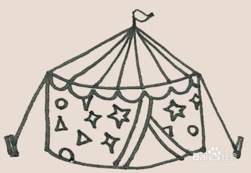 马戏团帐篷简笔画,简简单单几笔画出马戏团帐篷。简笔画的魅力教会你画画。