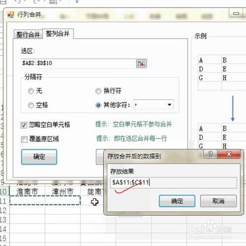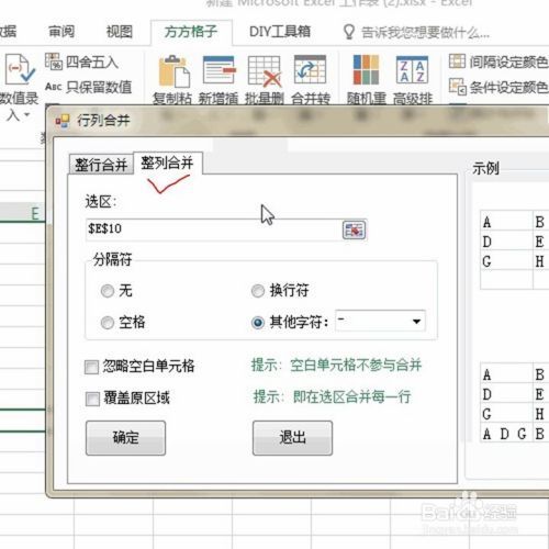 弹出对话框后,选择整列合并,之后直接拉选区域数据,如下图所示: