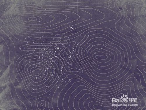 改变混合模式为允许等高线图,通过纸张的质感表现。用细微的垃圾刷到使用相同的深蓝色背景色清除出的线条部分,以创建一个苦恼效果的轮廓线描绘了过来。