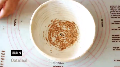 8欧包模具中放高粉、麦片。