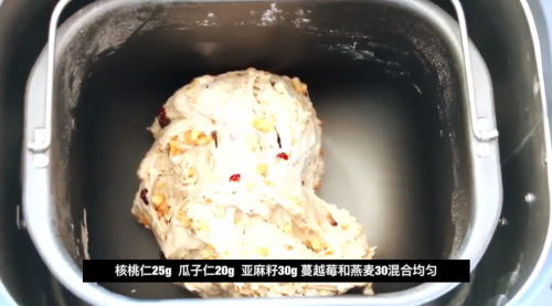 4放入核桃仁、瓜子仁、亚麻籽、蔓越莓、麦片混合均匀。