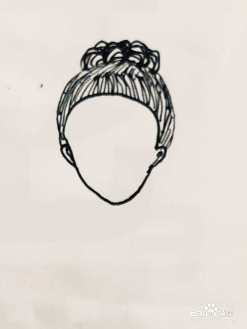 首先在白纸上,用黑色碳素笔画出人物的头部轮廓。我们在其头顶画出发型,用笔勾勒出发丝纹理。