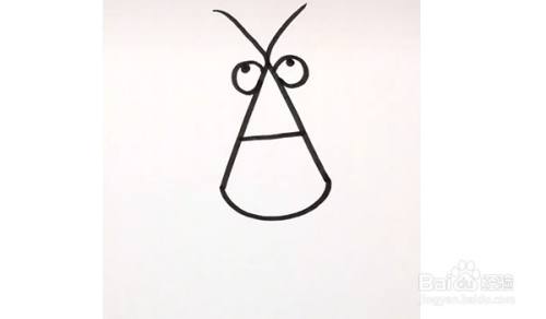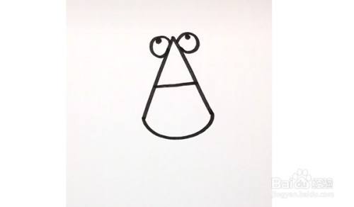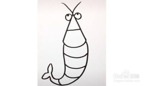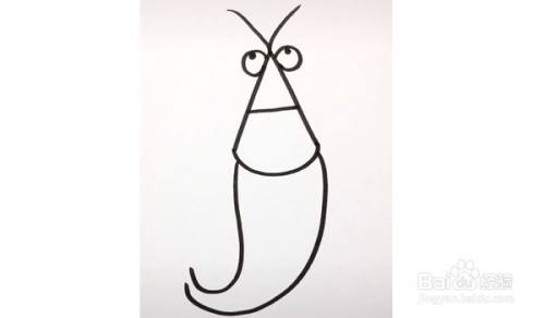 在A的上方尖部两侧画两个小圆圈,点上小点,这样虾的眼睛就画好了