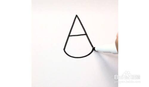 先写一个大写的A,然后连接A的下面封死作为虾的头部