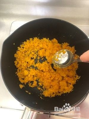 然后将晾凉的蛋黄碾碎,越碎越好。