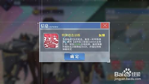 主炮每进行8次设计,触发一轮特殊弹幕;使用【试作型三联装310mm主炮】时,增加12%主炮效率,触发弹幕所需射击次数降低为4次,并强化特殊弹幕样式