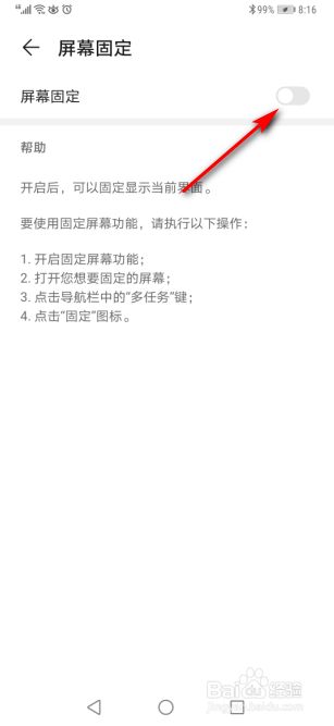 进入到【屏幕固定】页面后再点击开启屏幕固定功能。