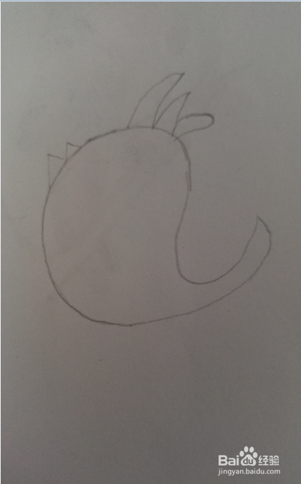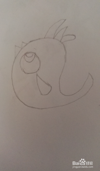 在身体轮廓线的内部画出一个大眼睛,在眼睛右下旁边画出一个小翅膀。