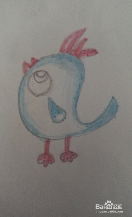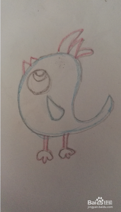 如图选用相应颜色铅笔对小鸟的整个轮廓描边一次,同时修整好线条。