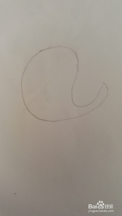 在白纸上用铅笔轻画出小鸟的身体,就像一个反着的逗号。