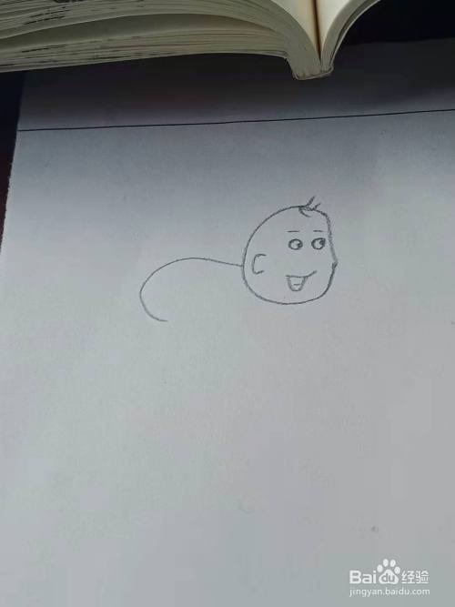 头上我们给他画上几根头发,如图所示。