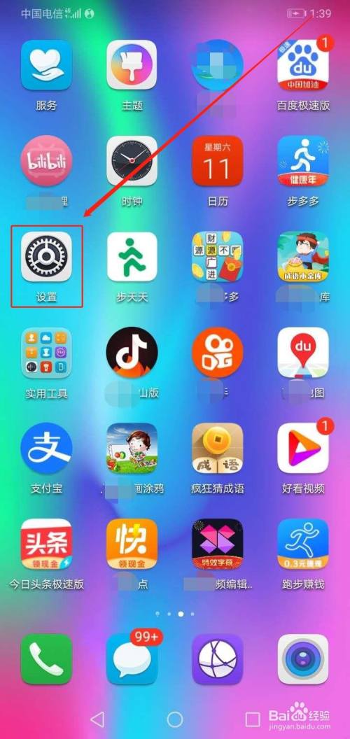 1、点亮手机屏幕,找到设置,双击打开;如图所示: