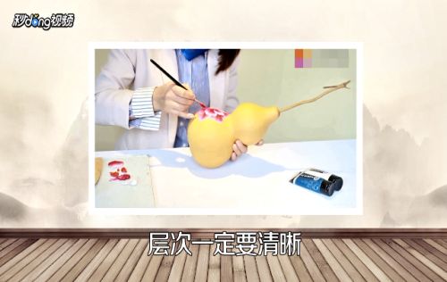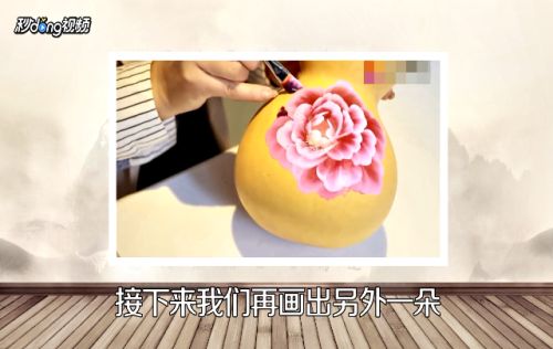 1干净的葫芦经过处理后就可以在上面进行绘画,牡丹代表富贵、葫芦的谐音是福禄,结合在一起是富贵福禄。