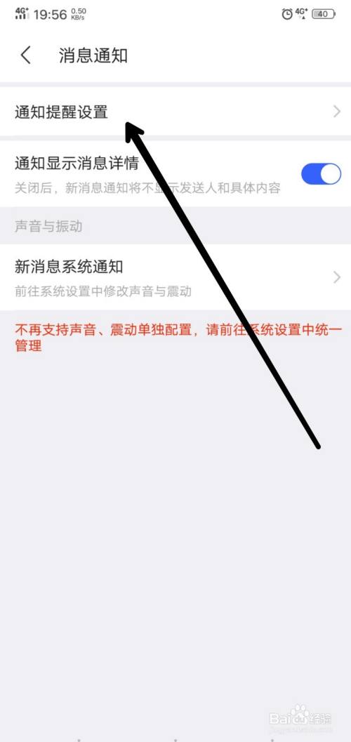 点击通知提醒设置。
