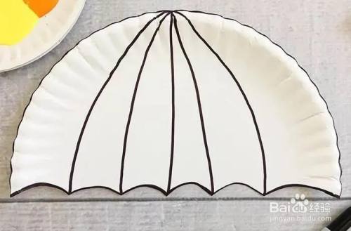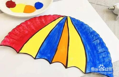 用另一半的纸盘剪出把手样式,粘贴在伞面中心处就大功告成啦。