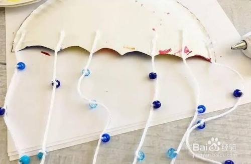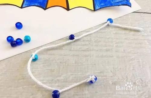 用热胶枪或者胶带将彩珠线粘贴在伞面上。