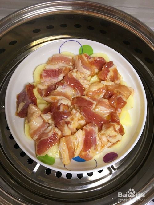 这道菜操作起来非常简单方便,把五花肉切成薄片,用酱料抓匀后静置20分钟左右,然后放在土豆片上,隔水蒸10到15分钟就可以上桌了。经过蒸制,五花肉的油脂渗入到土豆片中,鲜香肥美,却又毫不油腻,很是爽口。
