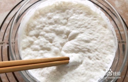 发酵完成了以后,再用筷子搅拌一下,把气泡排出去。