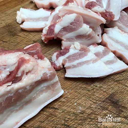 五花肉切稍微厚一点的片,也可切粗一点的条。一般一碗粉蒸肉四两猪肉差不多,今天825克猪肉做两碗。
