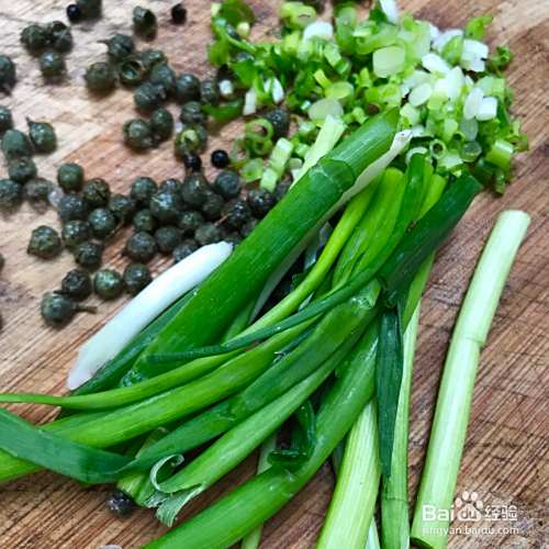 青花椒和小葱剁碎。 青花椒选黑籽少的,这一步不能减少,一定要手工剁碎,曾经尝试用机器打,味道完全不对。