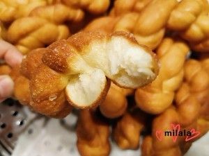 tips:可以先扔一个小面团进去,只要面团浮上来且周围有小泡泡就证明油温可以了。