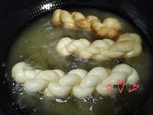 炸的时候来回翻动一下,全程中小火,只要麻花上色即可捞出!