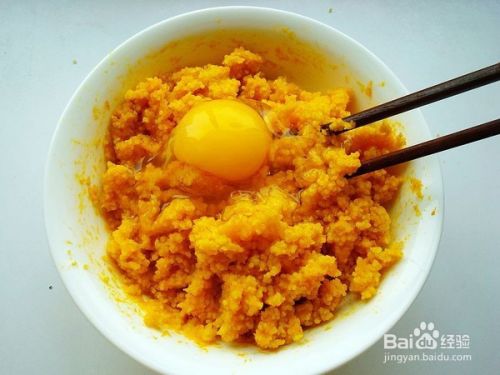 凉一会,最好凉透以后,加一个鸡蛋搅拌均匀成糊糊形状