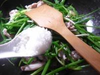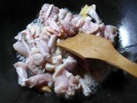 随后,下入剁成块的牛蛙,加适量的料酒。