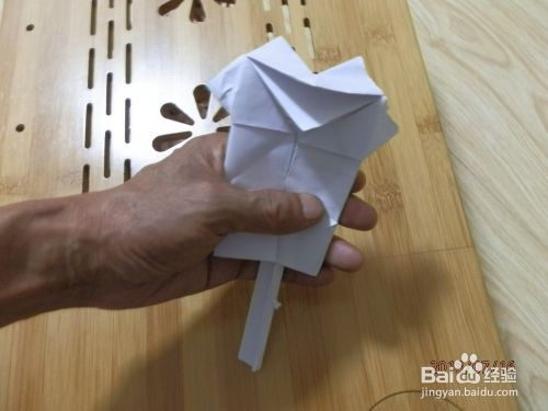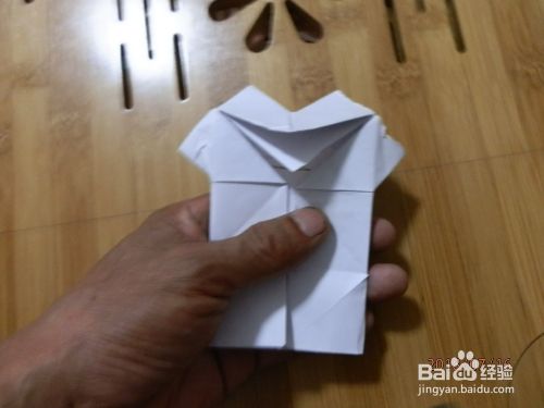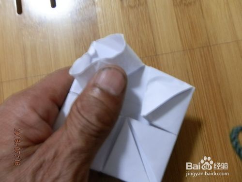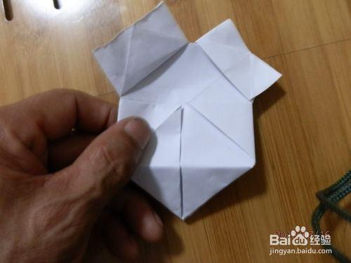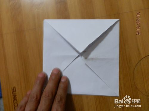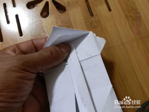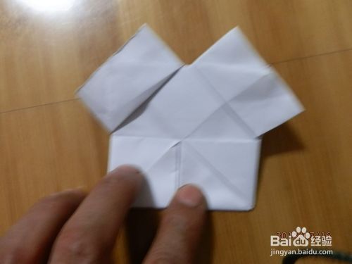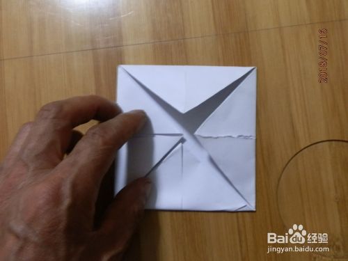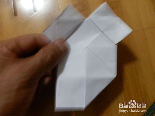 把下角打开。两面折到里面纸放下。