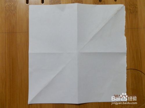 方形纸中间对折,形成一个十字花折痕。