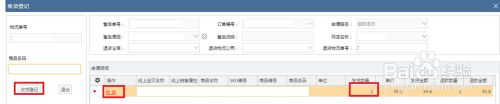 打钩后,点击“收货登记”,系统是会自动帮你填好收货数量,如图,第一件商品就是我打钩的,它会出现在第一行,点击左边的收货,在下边的收货明细就会显示,接着点击最左边的收货登记(收货登记不一定在最左边)。我们如果勾选的多就不只出现在第一行,我们要对多行进行收货。剩下的没填退货数量的,都不是退货商品,不用管它。