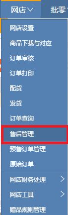 点击菜单栏的网店,我们可以看到售后管理,点击进去。
