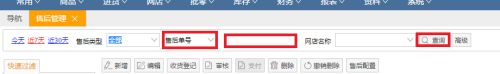 进去后售后管理,我们可以看到上边有几行选项,点击“下拉”按钮,我们可以选择买家的账号、手机、姓名等,在旁边的空白框写上对应的信息,再点击查询。