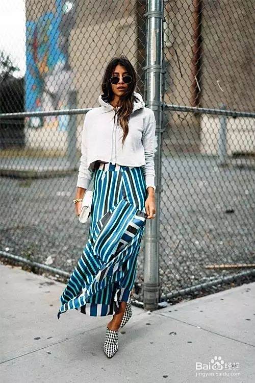 连帽卫衣搭配印花高腰半身裙,不但给人一种很富有生机的新鲜感,同时能够让整个人看起来更具有活力,在一定程度上有很强烈的吸睛效果。
