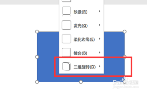 点击形状效果——三维旋转,选择里面的一个。