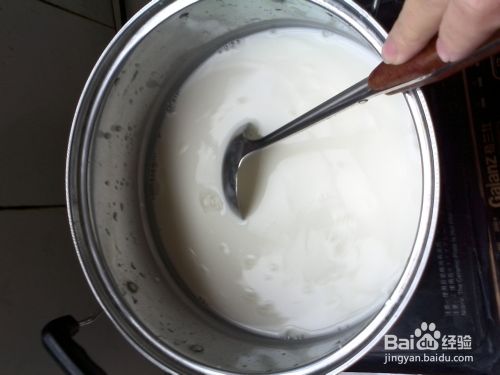 1首先把不锈钢锅和汤勺洗干净,不能有油类的东西。把纯牛奶倒进锅里,把锅抬到电磁炉上。用中火慢慢煮热纯牛奶,在煮的时候须要用勺子随时搅拌着牛奶。不要让牛奶底部糊了,用中火把牛奶煮沸,煮涨起来。放上糖,在把不锈钢锅抬下来。边搅拌边让锅里的牛奶冷下来。如有条件可以在锅的下面放一盆冰块,让锅里的牛奶冷得更快一些,更能保持牛奶的营养。