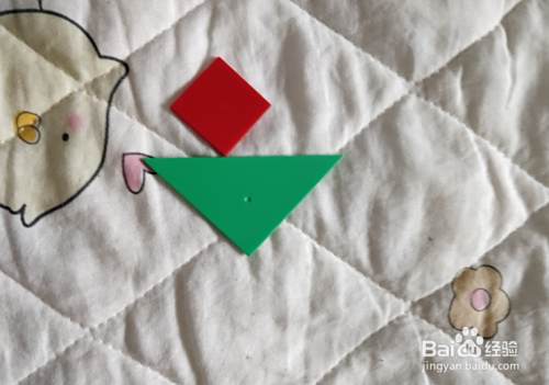 在平行四边形右下,放上黄色小三角形挨着,如图。这样就出来了。