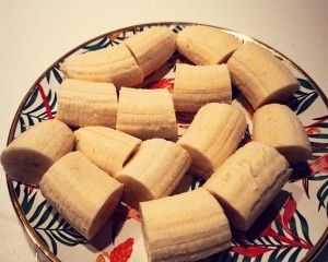 香蕉3根,剥皮,切成2cm长的段,再用刀轻轻拍平,方便后面的操作。