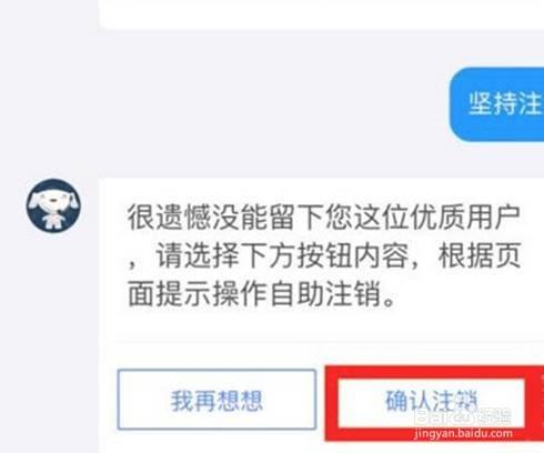 4、在输入框输入金条怎么注销进行发送,在回复的内容中点击坚持注销。