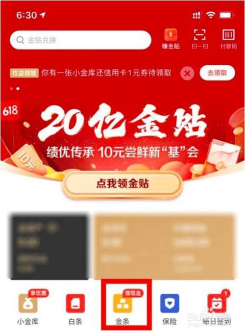 打开京东金融app,在首页点击金条选项。