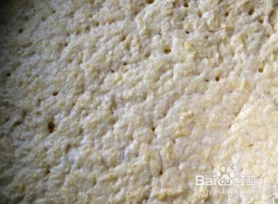 加入温水一边加一边搅拌,将面和成比面团软比面糊糊稠的样子,放在温暖处发酵60分钟左右,看到面表面有泡泡而且涨高了就表示发酵好了。