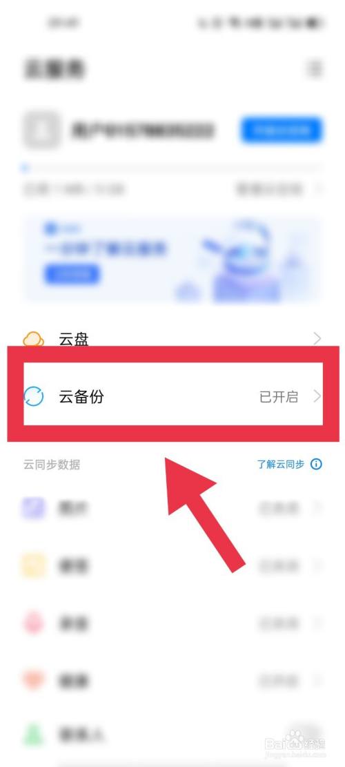 第三步,接着点击“云备份”设置一栏。