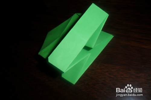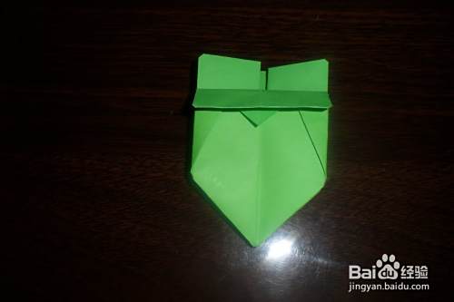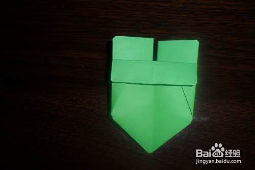 将前后两面上面的小三角分别折下来。
