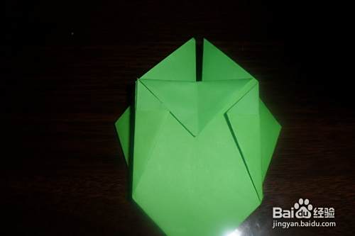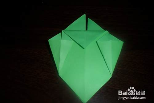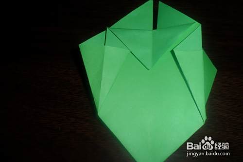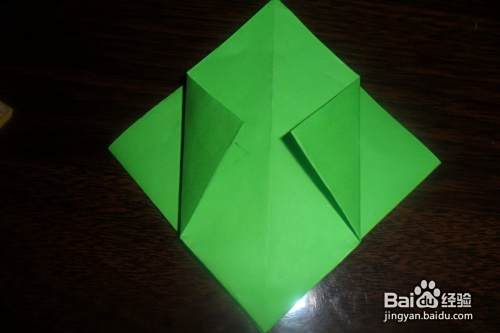 接下来,将正反两面的四个刚撑开压下的小三角分别向里对折。