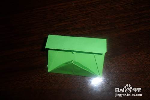 如下图所示,将上面部分在向下折,和撑开压下的小三角上边沿对齐。另一面同样折法。