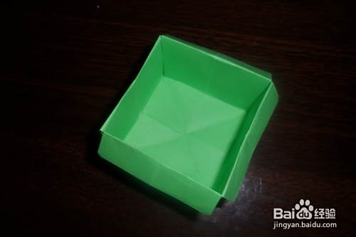 好了,从上面开口处慢慢往外撑开,依据折痕整理定型。一个正方形的收纳盒就折好啦!