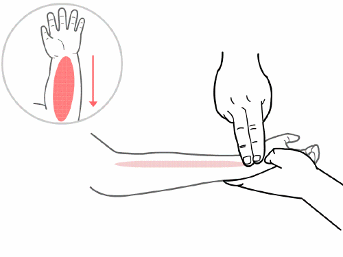 位置:前臂内侧,掌横纹与肘横纹的中点(总筋至洪池)成一直线。
